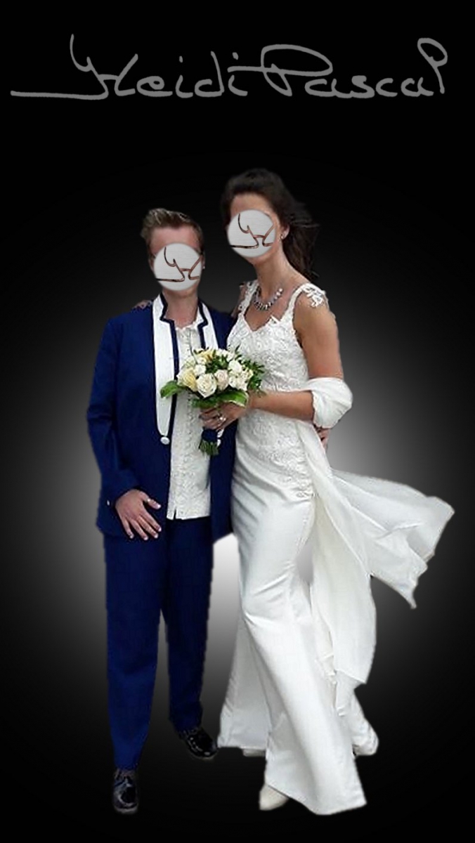 Ook naar wens van het koppel zijn de stoffen van de trouwjurk gebruikt bij de outfit van de partner zonder dat deze match de overhand krijgt.
